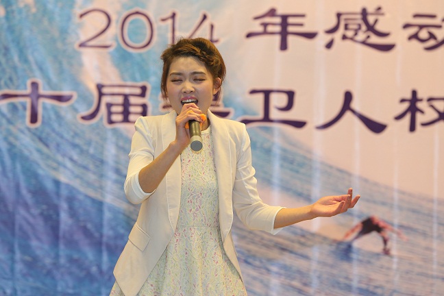 刘丹律师在2014年感动击水年会上演唱《我期待》