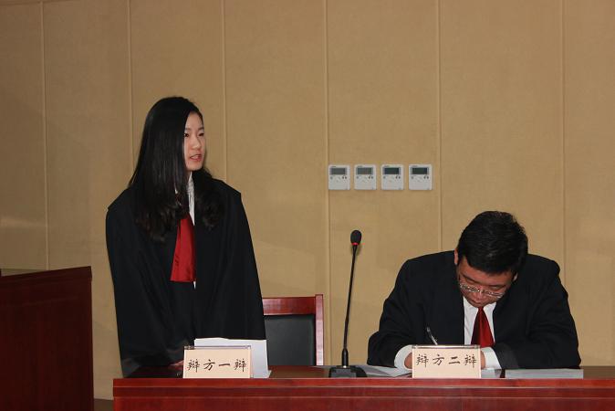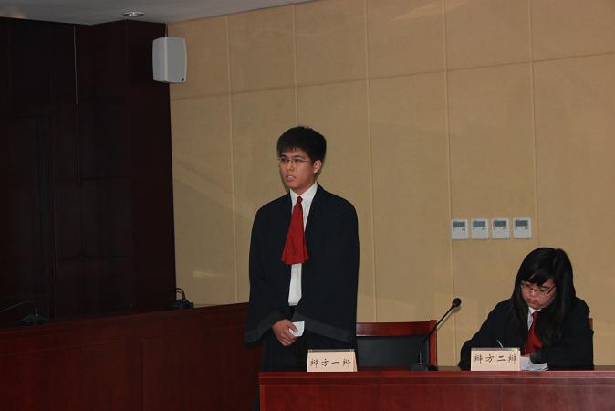 第二组辩手:实习律师张国辰(右)、裘敬娴(左)