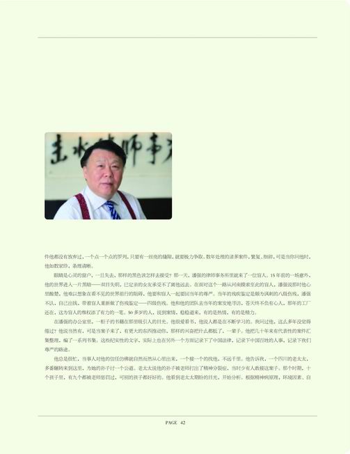 在潘强的办公室里,一柜子的书籍在那里吸引人的目光。他很爱看书,他说人都是在不断学习的。我问过他,这么多年没觉得倦过?他说当然有,可是当案子来了,有更大的东西推动你,那样的兴奋把什么都抵了,一辈子。他把几十年来有代表性的案件汇集整理,编了一系列书集。这些纪实性的文字,实际上也在另外一个方面记录下了中国法律,记录下中国百姓的人事,记录下我们尊严的路途。