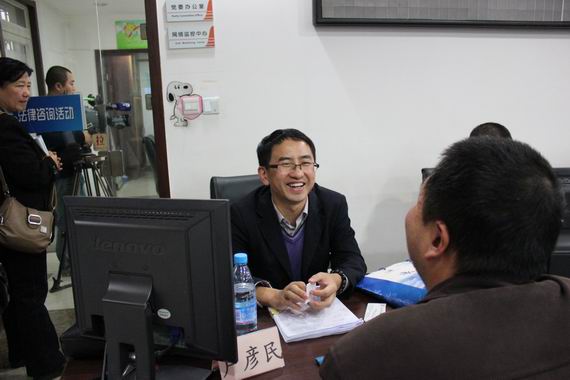 本所讯 2013年11月9日上午九时,我所主任潘强律师、南所主任卢彦民律师、劳动法务部部长于雪梅律师、安刚律师、曹佳君律师、谷艳艳律师等一行来到位于河北路与保定道交口的崇仁里社区劳动保障工作站,参加了由天津电视台公共频道《新说法》栏目举办的大型公益法律咨询活动。