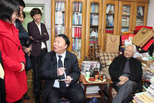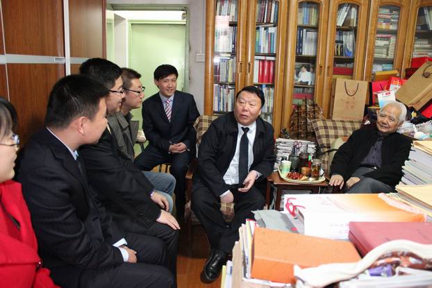 本所讯 2013年11月1日上午,我所主任潘强律师率副主任刘建律师,杨雪、曹佳君、王茜、昝敏、孟繁伟律师,南开大学法学博士潘晓滨及主任助理尹敬静一行来到北京,拜望了享有中国刑法学之父、刑法学界泰斗美誉的中国人民大学法学院教授高铭暄,并代表全体击水律师祝愿高铭暄教授福寿安康。