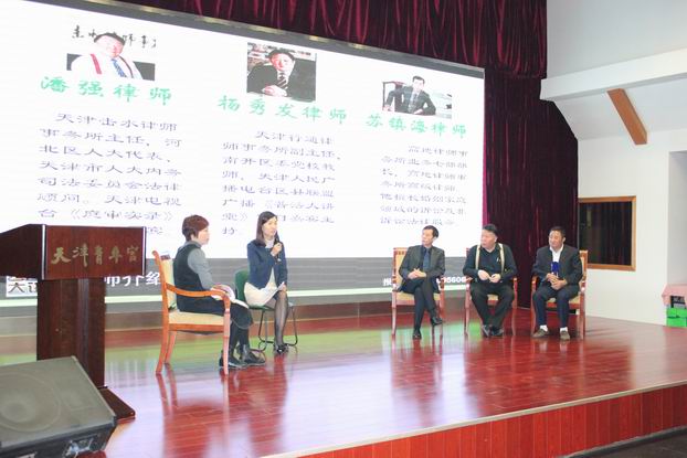 本所讯 2013年9月28日上午九时,我所主任潘强律师率南所主任卢彦民律师、婚姻法务部部长张向龙律师、于雪梅律师、安刚律师、鲍宏声律师及刘念鑫律师一行来到天津青年宫三层,参加了由天津电视台科教频道法眼庭审实录栏目与天津青年宫共同主办的公益大讲堂活动。现场共有六十余名观众热情参与。