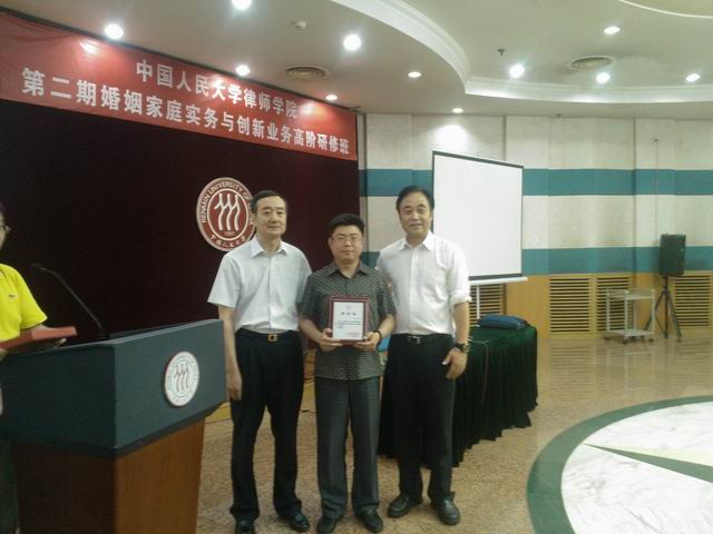 本所讯 2013年5月29日至6月2日,我所婚姻法务部部长张向龙律师赴京前往中国人民大学律师学院参加第二期“婚姻家庭实务与创新业务”高阶研修班,并听取了全国人大常委会法制工作委员会民法室主任、《新民事诉讼法》立法专家贾东明主讲的“新修订后的《民事诉讼法》对律师代理婚姻家庭案件实务的影响”;中国人民大学法学院副院长、教授、博士研究生导师龙翼飞主讲的“律师实务中面对的《继承法》修订的热点及争议”;最高人民法院民事审判第一庭高级法官,中国人民大学法学硕士,中国法学会婚姻法学研究会常务理事吴晓芳主讲的“《最高人民法院婚姻法司法解释(三)》实施中的疑难争议问题解析”;北京市第二中级人民法院法官胡建勇主讲的“婚姻家庭案件不动产分割及相关争议处理”等相关课程。