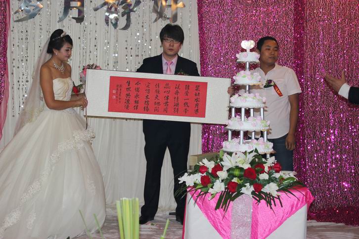 本所讯 2012年9月22日,我所律师范蕊与爱人蒋疆喜结连理,婚礼在天津市河东区大通会馆隆重举行。潘主任携夫人王伟及众律师、文员共同参加并见证了这场婚礼。