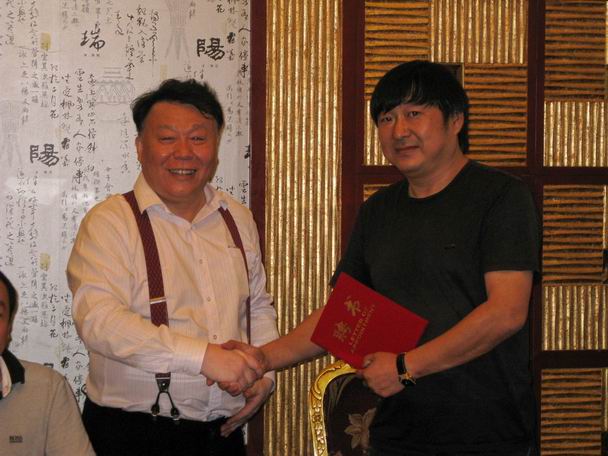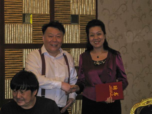 潘主任为河北区政协委员、天津天明文化艺术传播中心总经理冯明颁发聘书