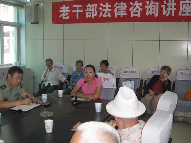 本所讯 2012年9月12日上午九时,我所法律援助部部长齐跃律师受为河北区中山路警备区第六干休所邀请,为退休老干部讲解“老年人该如何正确维护自身的合法权益”。