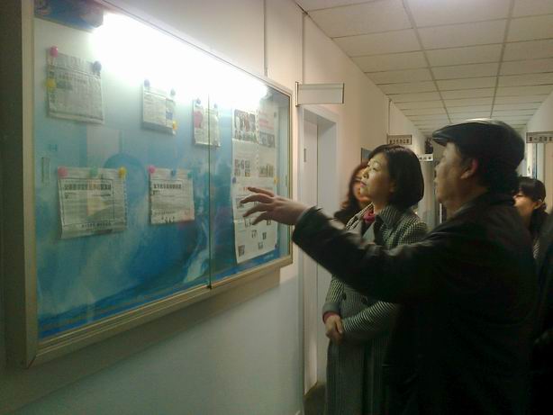 王秀文副主任欣赏了我所橱窗的宣传报纸,并赞赏了《击水律师报》